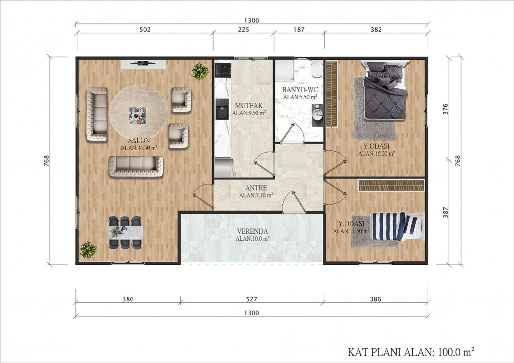 100 m2 SINGLE STOREY PREFABRICATED HOUSING