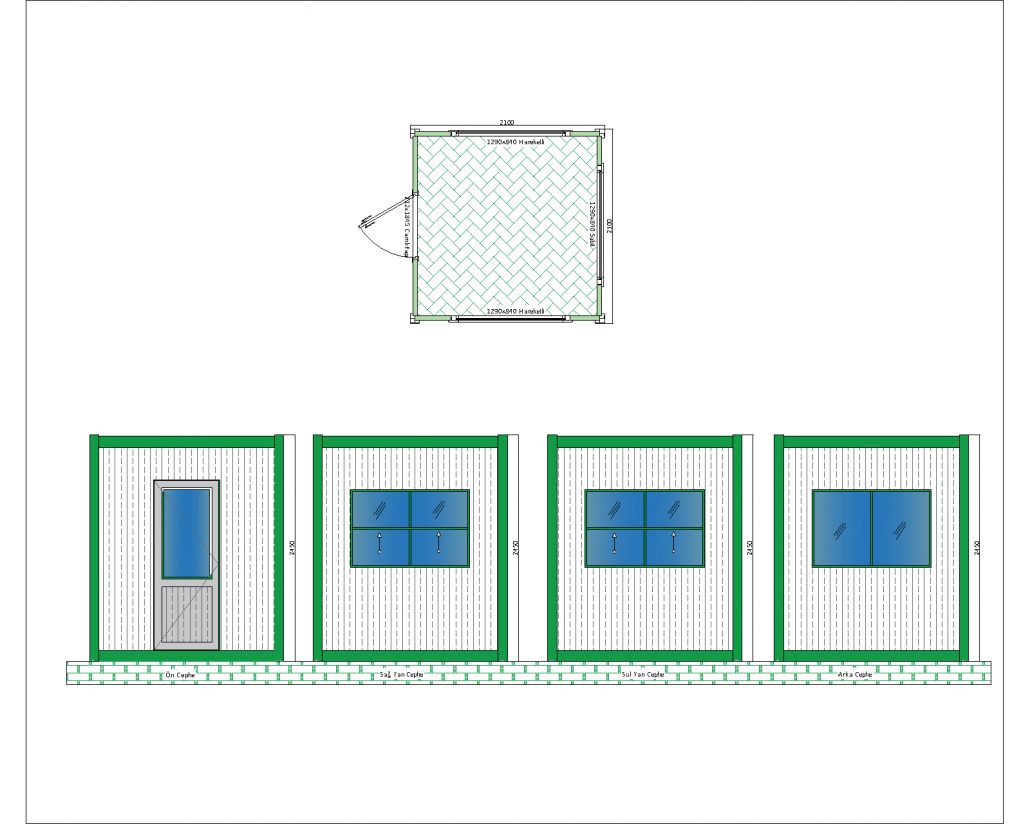 This panel cabin is manufactured for various needs such as construction site offices, security points or temporary work areas with its large interior volume and functional design. It offers a spacious usage area thanks to its 2300 mm x 2300 mm floor area and 2540 mm height.