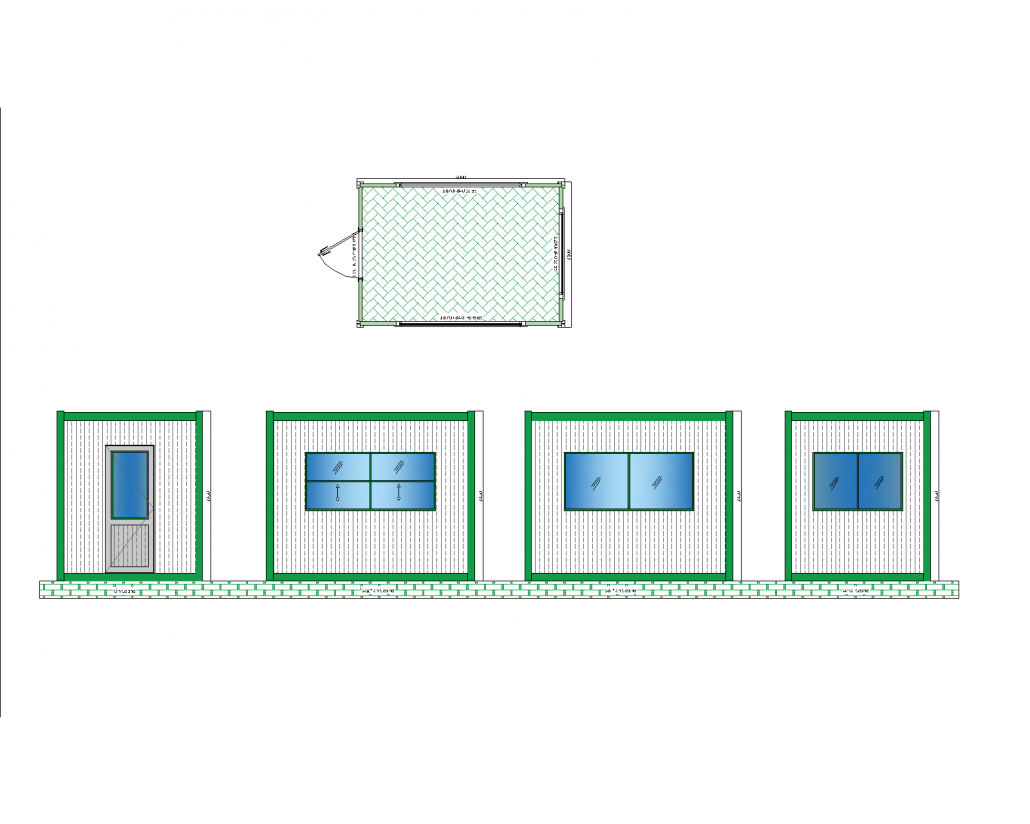 This wide panel cabin model offers solutions for various needs by combining functionality and ease of use. Thanks to its large interior space, it can be used for purposes such as office, waiting room or temporary accommodation. The glass door on the front facade provides easy entry for users and provides natural light for the interior. The large windows on the side facades create a sense of spaciousness and support air circulation inside.