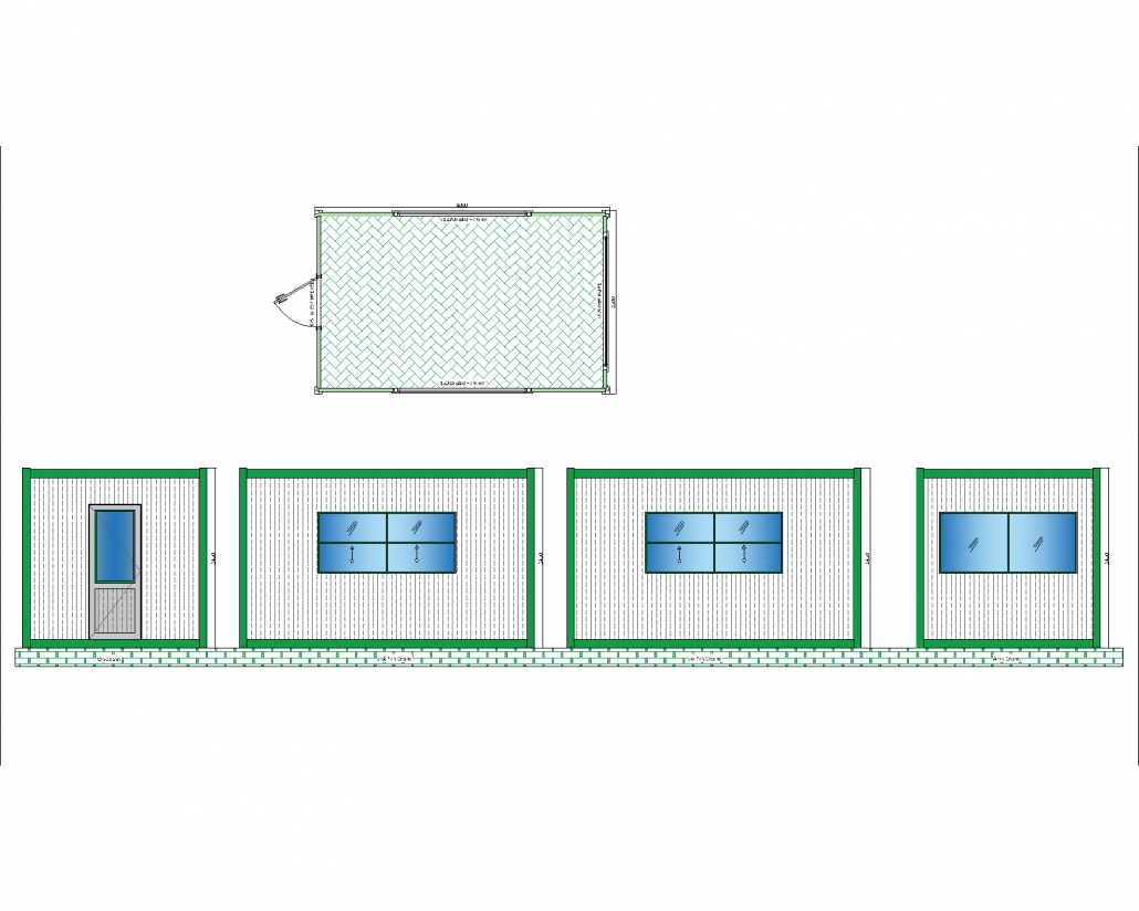 This panel cabin model is an ideal solution for work areas, offices or temporary accommodations with its large interior volume and versatile design. As seen in the image, it offers a spacious usage area thanks to its 2500×4000 mm wide structure. The entrance door and large windows on the front facade increase the flow of natural light and create a bright and spacious environment in the interior. At the same time, window positions provide appropriate ventilation and offer the user a comfortable interior.