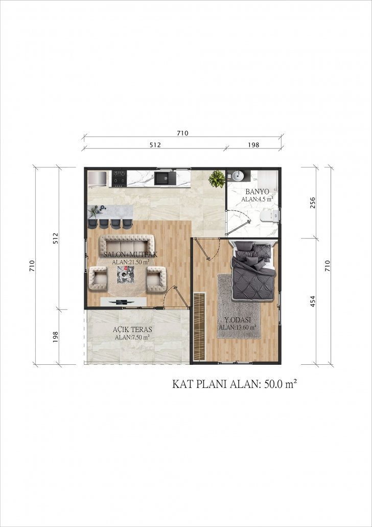 50 m2 SINGLE STOREY PREFABRICATED HOUSING